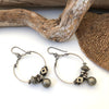 This pair of earrings features a combination of antique coin silver beads that slide along a hammered ring.