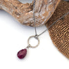 Pendant is 1” long and hangs from a delicate but sturdy chain measuring 18” and is finished with a lobster claw clasp. All metal is oxidized sterling silver.
